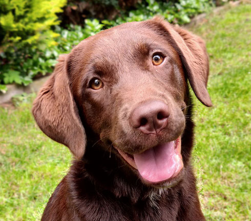 Das braune, im Januar 2018 geborene Labradormädchen Lucie ist ein einziger Sonnenschein! Wegen innerfamiliärer Probleme kam sie in eine Pflegefamilie der Tierhilfe