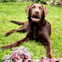 den Spaziergängen begegnet. Ihr Verhalten kann man insgesamt nur als ideal bezeichnen, Stubenreinheit, Autofahren, Tierarzt, Essen, Schlafen, Gassigehen. Labradortypisch ist sie eine echte