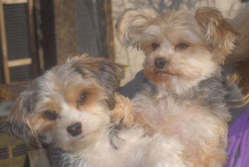 Das sind Mia und Kratos, 2 Jahre alte Yorkshire-Mixe. Sie wurden von ihren "Menschen" "vergessen", das heißt einfach in der Pension zurückgelassen. Mia ist ein ganz zartes kleines Zicklein, Kratos extrem lieb und anschmiegsam.