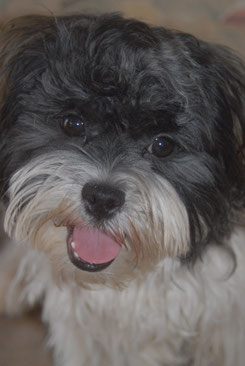 Hundemädchen der Rasse Havaneser. Fellpflege benötigt sie täglich, sie mag das sehr und genießt es ausgiebig. Ihr charmanter Vorbiss macht sie noch vollkommener.